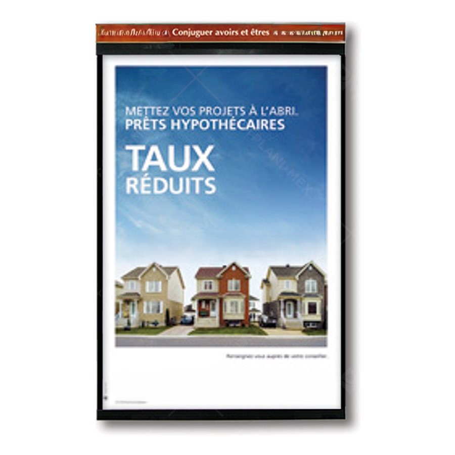 A7 wall mounted poster holder for 20 x 30″ poster with anti-buckling extrusion sides. Extrusion at the top for inserting tab.