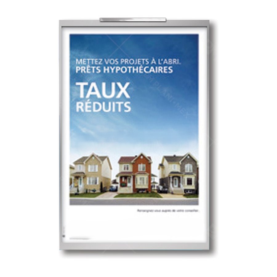 C6 wall mounted poster holder for 20 x 30″ poster, with anti-buckling extrusion sides, suspended with an anodized aluminum U extrusion.