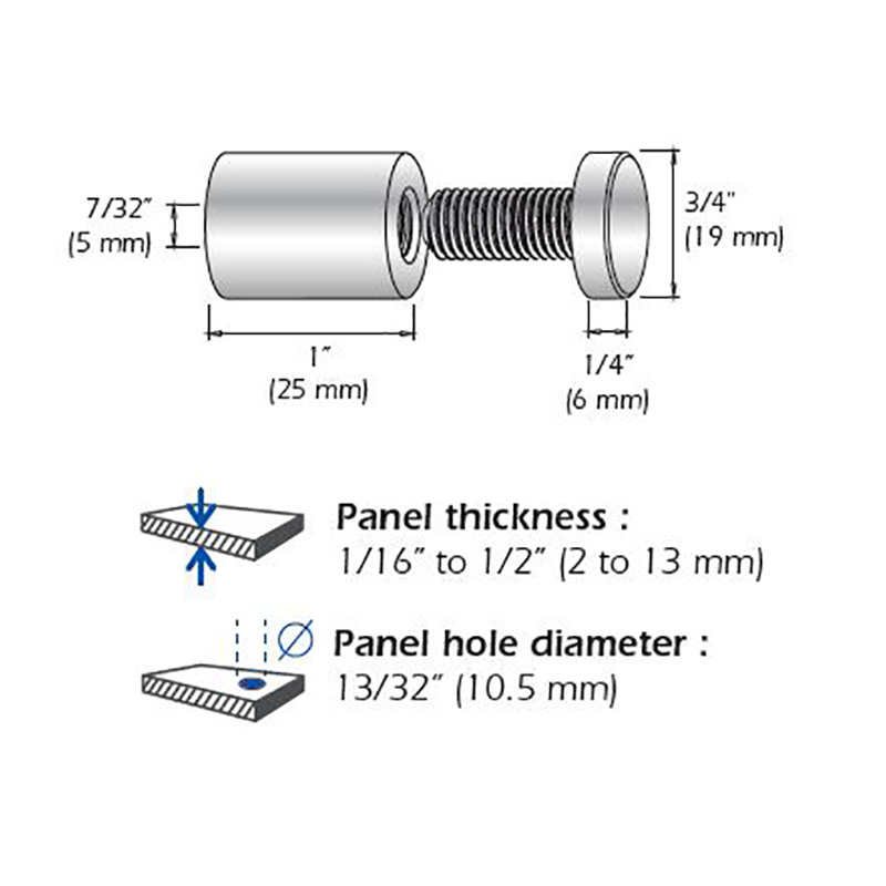 • Panel hole diameter: 10,50mm (13/32”)