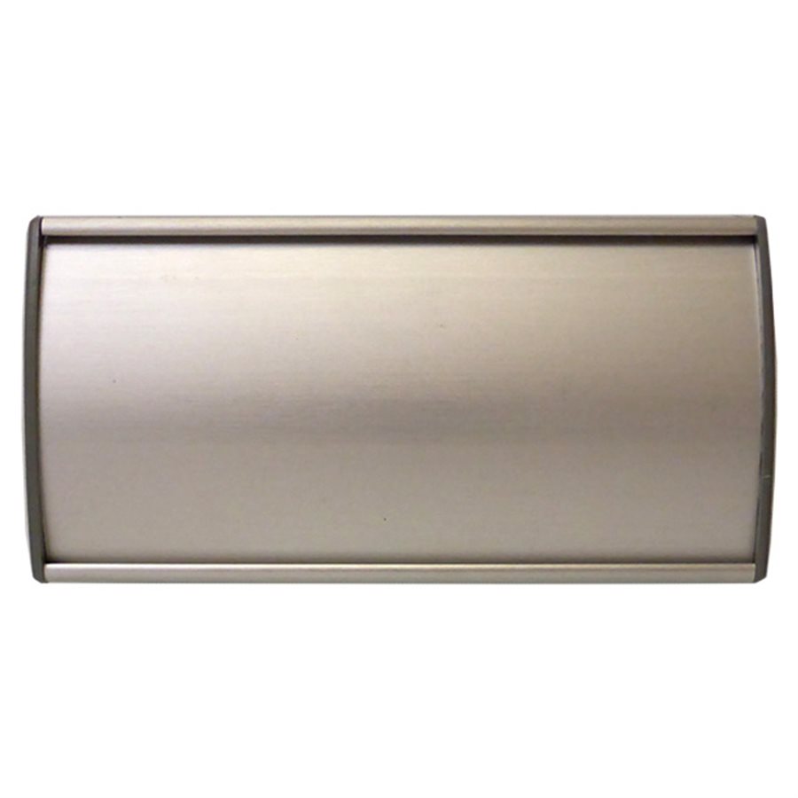 Porte-nom mural, courbé, sans reflet, message sur acétate laissant paraître le fond en aluminium anodisé.